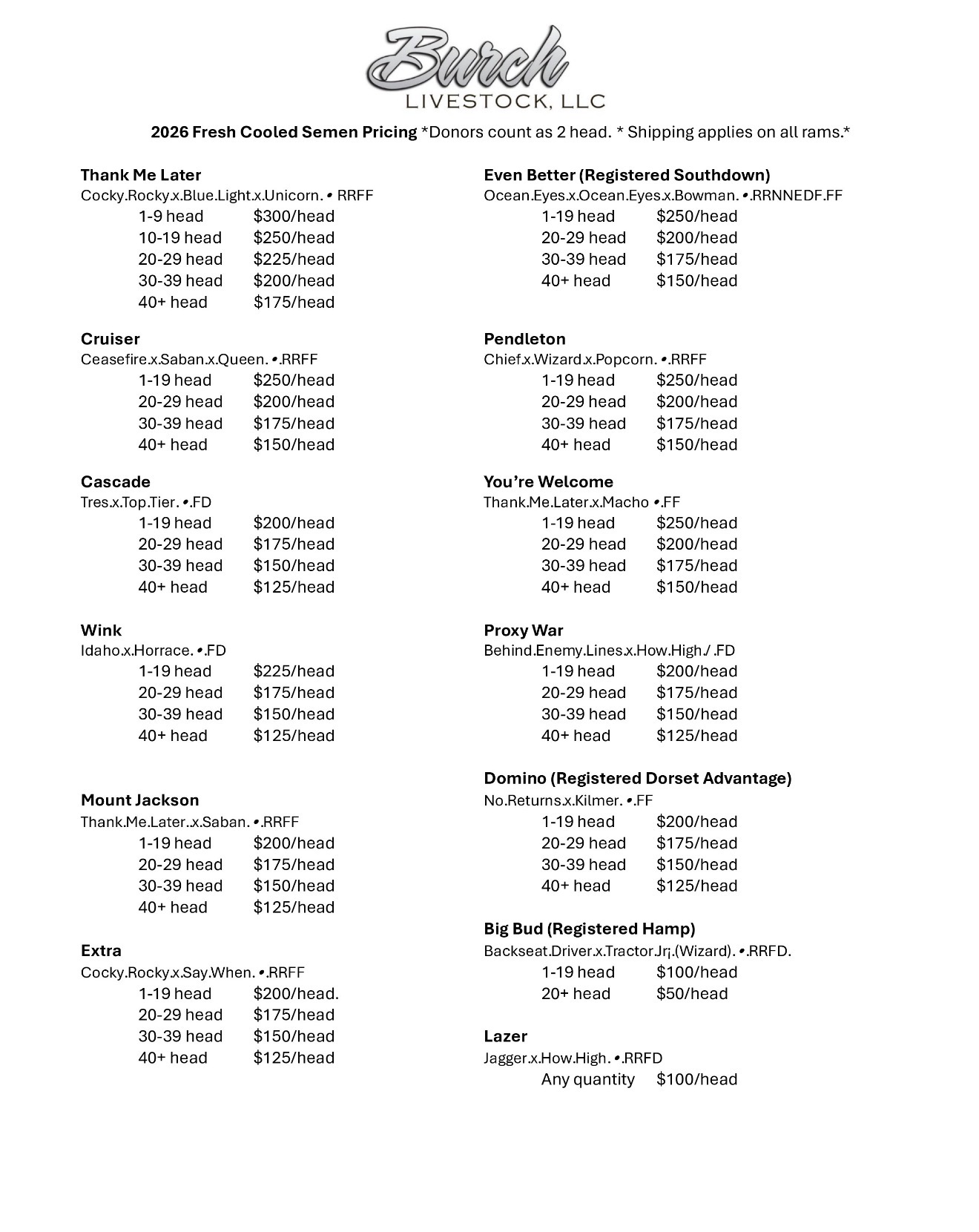 Fresh semen by the dose, half or full jump available on our entire stud line-up! Contact Kolby 307-247-3043 or Micky 308-440-8179 to book fresh semen for your upcoming A.I. date!